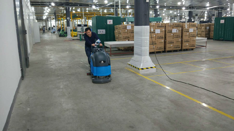 制造廠車間的地面有環氧地坪,水泥地面等,依靠人工掃把和拖把的清潔是清潔不干凈的,而且費時、費力、浪費資源和成本。關鍵清潔地面時需大量人力,物力而且地面的臟水擦不干凈容易導致人員造成危險,而洗地機是集灑水,吸水,將污水帶離清潔現場的清潔設備,所以使用洗地機是比較好的選擇。