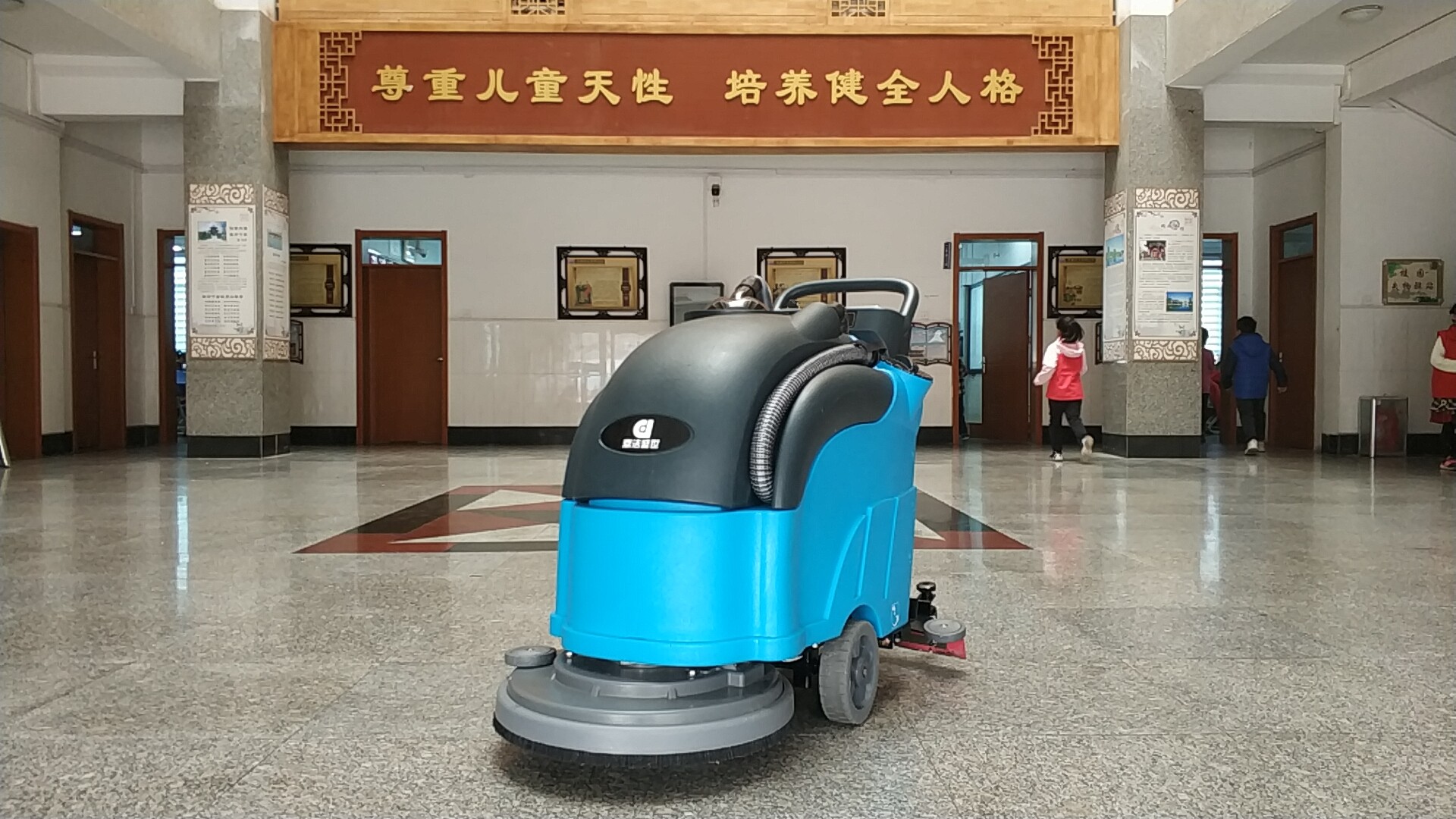 針對校區教學樓走廊,辦公大廳等公共區域,可以選擇鼎潔盛世DJ20手推式洗地機,