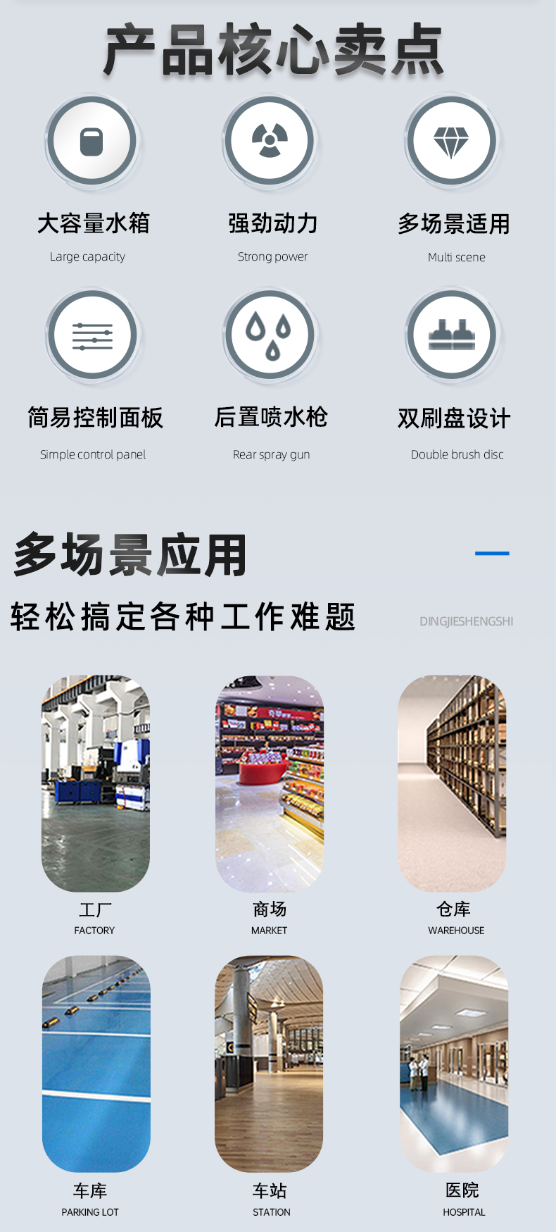 適用工廠車間,學校,醫(yī)院等,淄博洗地機 解決水泥地,環(huán)氧地坪,瓷磚等地面