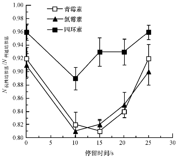 為了表征四環(huán)素抗性菌的抗性變化,用含一定濃度抗生素(青霉素、氯霉素和四環(huán)素的濃度分別為16、32、16 mg · L-1)的營養(yǎng)瓊脂培養(yǎng)基測定四環(huán)素抗性菌濃度,用所得結(jié)果與普通培養(yǎng)基測定結(jié)果之比(N抗性培養(yǎng)基/N普通培養(yǎng)基)表示四環(huán)素抗性菌抗性.該比值越高,表示抗性越強(qiáng).