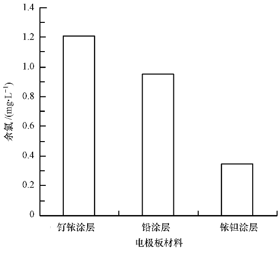 圖2 不同陽極電極板材料產(chǎn)生余氯對比