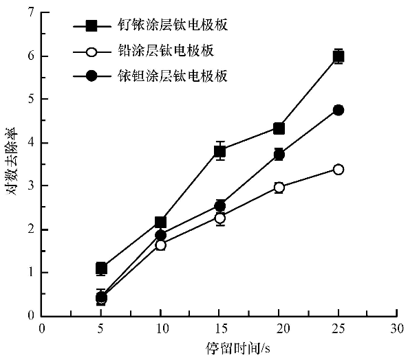 圖1 陽極電極板材料對大腸桿菌滅活效果的影響