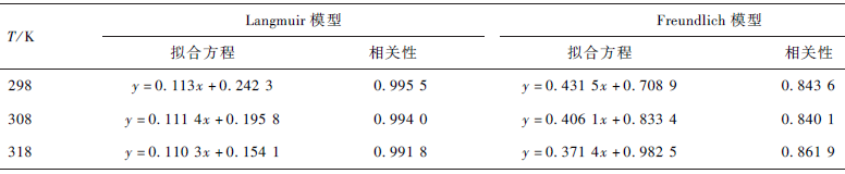表1 吸附等溫模型