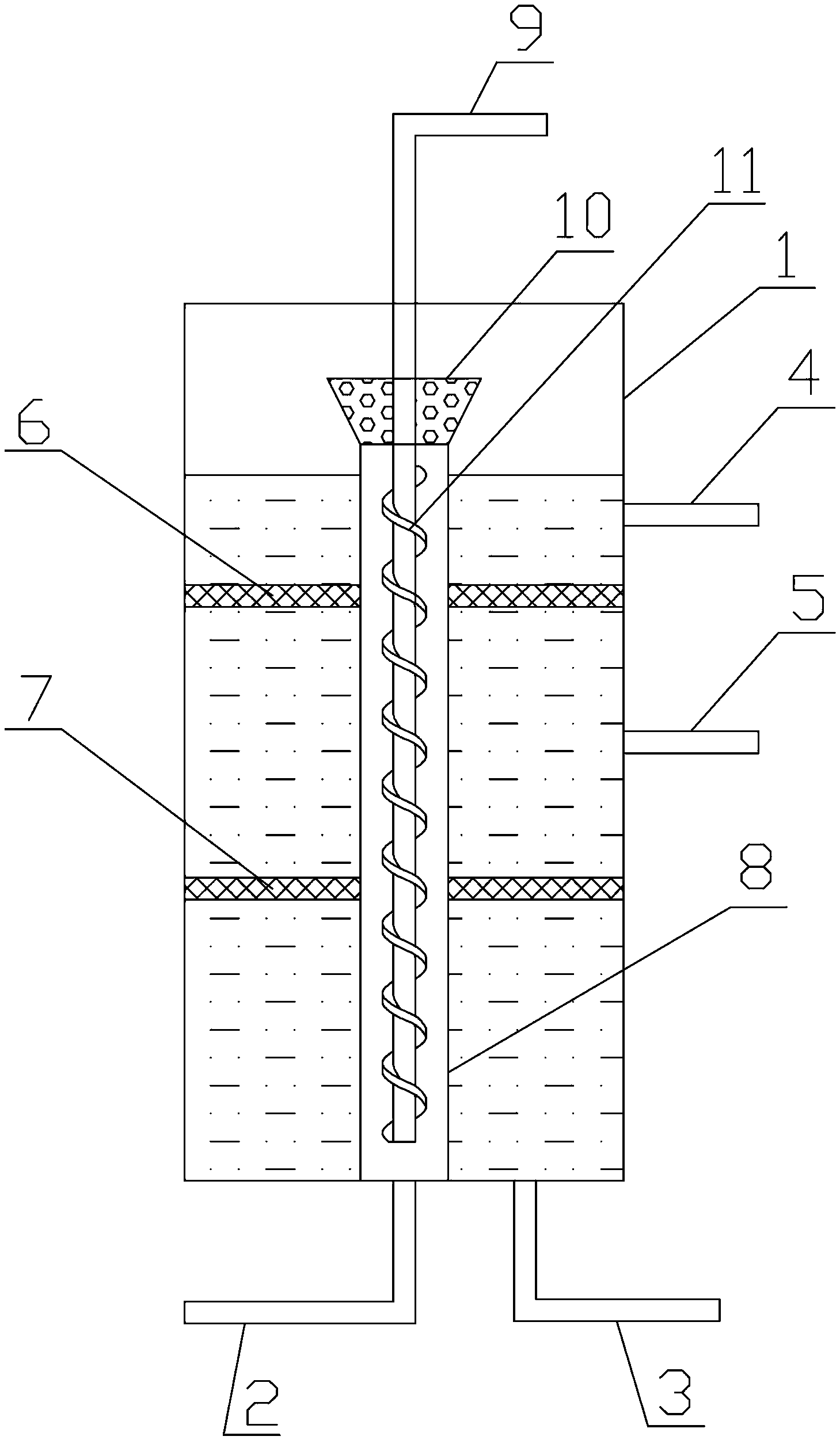 2.根據權利要求1所述的雙甘膦廢水的處理裝置,其特征在于:所述中心管(9)外側設有螺旋板(11)。