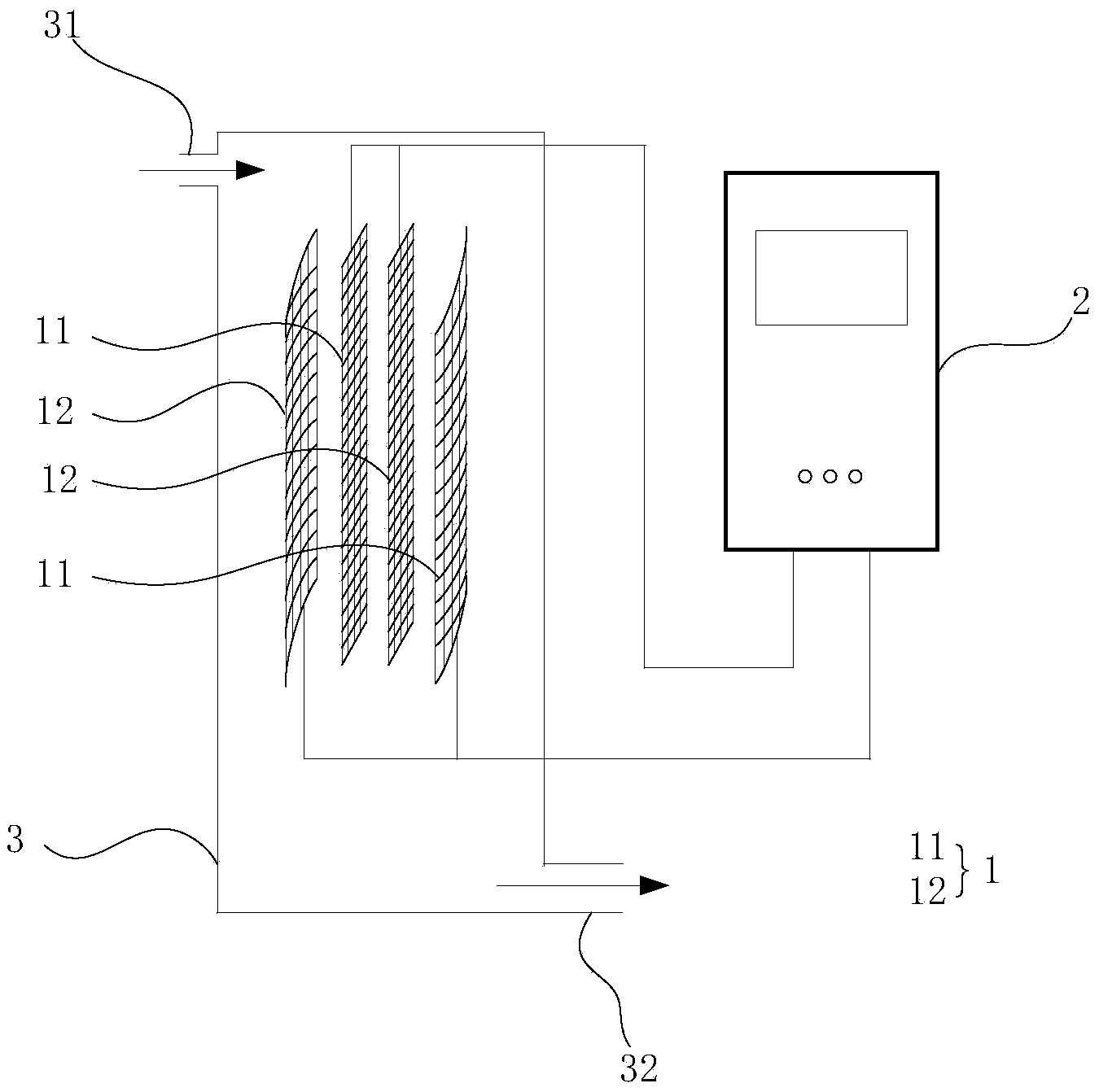 4.如權利要求1所述的水處理的鈣鎂離子吸附自動剝離器,其特征在于:所述剝離器出水口低于所述電極組,所述入水口高于所述電極組。