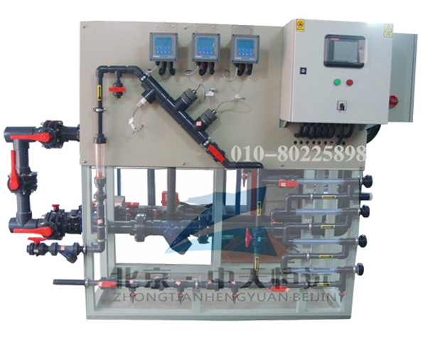 示蹤劑加藥裝置由示蹤劑儀表、PH儀表、0RP儀表、電導(dǎo)率儀表、控制系統(tǒng)、無(wú)線遠(yuǎn)傳系統(tǒng)等部分組成。其工作原理是由示蹤劑儀表檢測(cè)循環(huán)水系統(tǒng)中藥劑的濃度,進(jìn)行PID運(yùn)算,然后自控制系統(tǒng)啟動(dòng)或關(guān)閉加藥泵往循環(huán)水系統(tǒng)添加藥劑。其功能是使藥劑穩(wěn)定在一定的濃度范圍,達(dá)到保護(hù)管道不會(huì)結(jié)垢或腐蝕的趨勢(shì)。循環(huán)水系統(tǒng)進(jìn)行排污或補(bǔ)水時(shí),只要藥劑濃度滿足設(shè)定值,加藥泵依然不向系統(tǒng)中投加藥劑。從而節(jié)約客戶使用藥劑的成本。