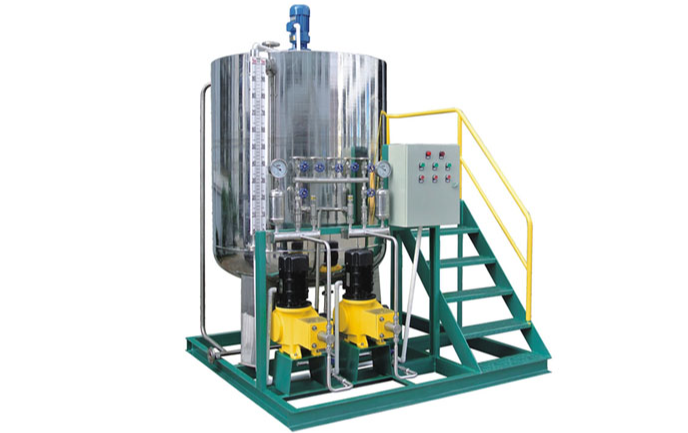 阻垢劑加藥裝置主要包括藥液溶配系統(tǒng)、計量投加系統(tǒng)、安全系統(tǒng)和控制系統(tǒng)等四部分。