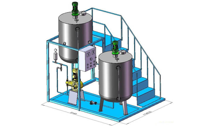 本裝置主要包括藥液溶配系統(tǒng)、計(jì)量投加系統(tǒng)、安全系統(tǒng)和控制系統(tǒng)等四部分。