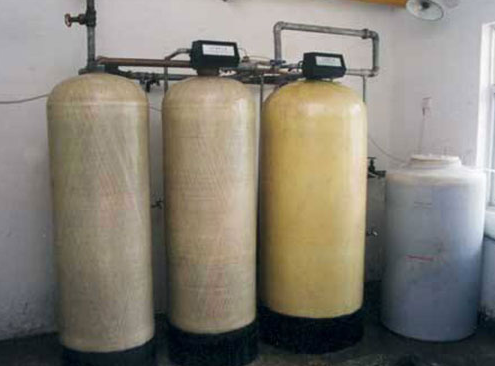 水的硬度主要由鈣、鎂形成及表示,一般采用陽(yáng)離子交換樹脂(軟水器)將原水通過鈉型陽(yáng)離子交換樹脂,使水中的硬度成分Ca2+、Mg2+與樹脂中的Na+相交換,從而吸附水中的Ca2+、Mg2+,使水得到軟化。隨著樹脂內(nèi)Ca2+、Mg2+的增加,樹脂去除Ca2+、Mg2+的效能逐漸降低,當(dāng)樹脂吸收一定量的鈣鎂離子之后,就必須進(jìn)行再生,再生過程就是用鹽箱中的食鹽水沖洗樹脂層,把樹脂上的硬度離子在置換出來(lái),隨再生廢液排出罐外,樹脂就又恢復(fù)了軟化交換功能。