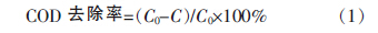COD 的測定采用重鉻酸鉀法,COD 去除率按式(1)進行計算: