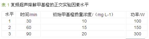 (2)正交實驗。以超聲作用時間、甲基橙初始濃度及超聲功率為影響因素,以脫色率為評價指標進行正交實驗,考察各因素對處理效果的影響。