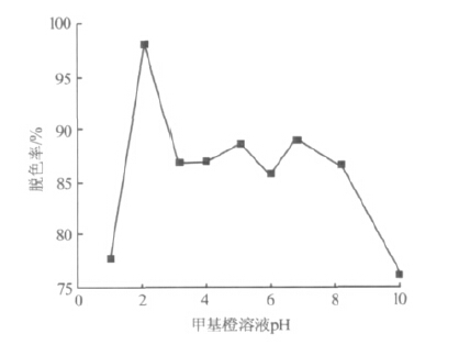 實驗結果表明,當pH 在3~7 時,脫色率和COD 去除率可分別保持在90%和95%左右;單獨考慮脫色率時,pH=2 時為比較佳。