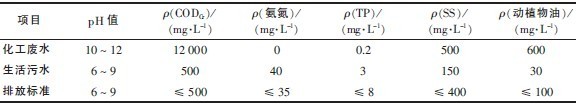 該項(xiàng)目設(shè)計(jì)處理能力為化工廢水120m3/d和生活污水20m3/d,共計(jì)140m3/d。增塑劑廢水具有pH值高、有機(jī)物濃度高、水質(zhì)復(fù)雜、難降解等特點(diǎn)[1-2],廢水中含有大量的對(duì)苯二甲酸和辛醇,對(duì)苯二甲酸濃度過(guò)高對(duì)生化系統(tǒng)有較強(qiáng)的抑制、毒害作用。