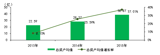 圖9環(huán)保設(shè)備行業(yè)上市公司2013~2015年總資產(chǎn)及增長情況