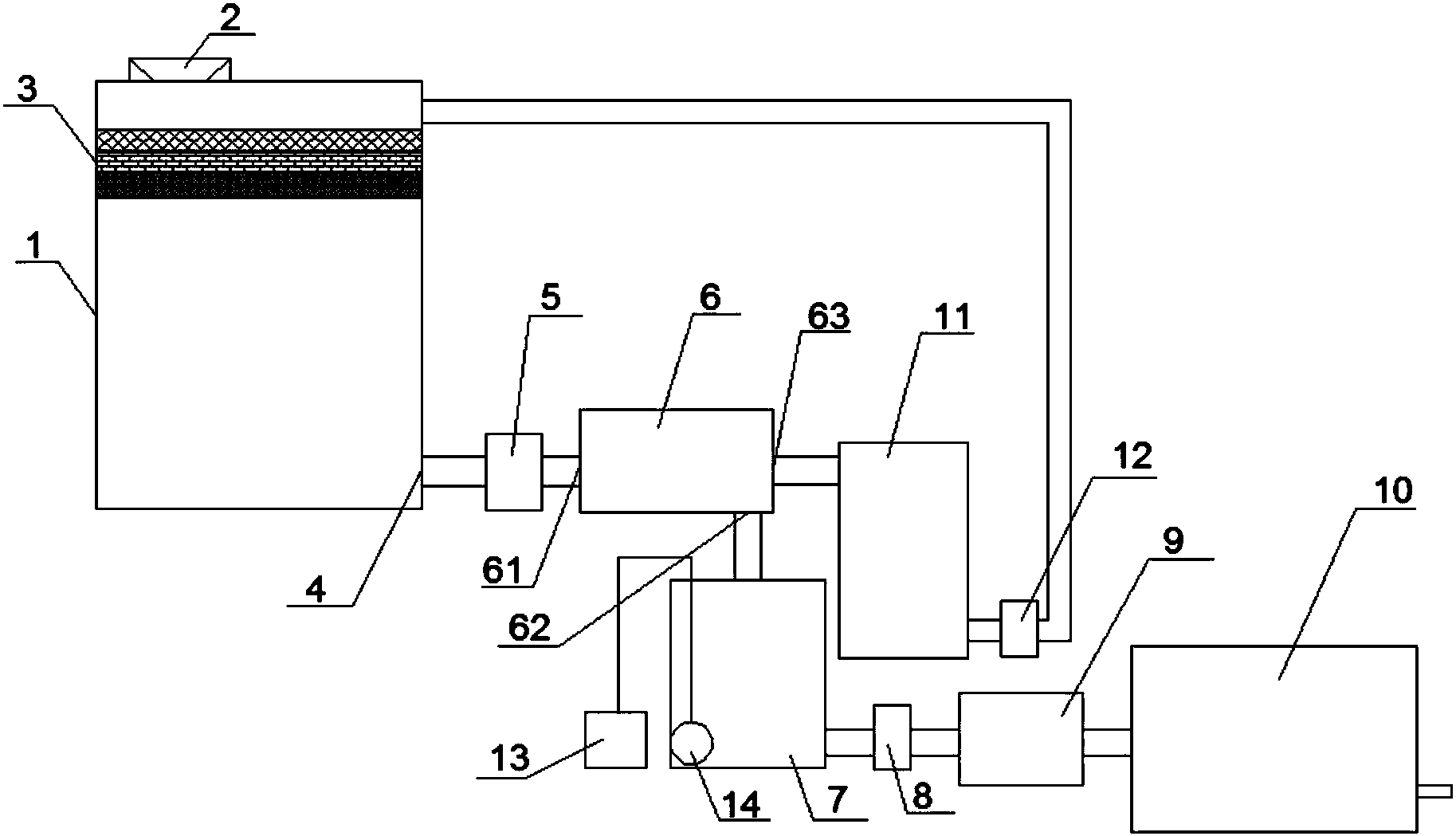 進(jìn)一步地,所述第三抽水泵的出口與所述廢水收集箱連通處位于所述過濾層的上方。