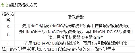 根據經驗確定了對超濾膜的清洗方案,見表2。