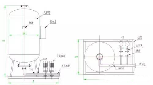 系統中定壓點壓力確定:定壓點壓力的高低要考慮兩個因素,一個是系統運行時任一點都不超壓,二是系統停運時系統不倒空。如果定壓點的壓力過高,系統中的每一點的壓力也就相應的增高,導致管道、閥門或設備等在高壓下運行,出現強度破壞或疲勞損壞。壓力設置太低,系統就會倒空出現氣堵,而導致介質循環不暢。氣壓罐工作壓力值按以下方法確定(推薦) (1)補水泵啟動壓力P1: P1=Po+0.005;“Po”系統比較高點壓力 (2)補水泵停泵壓力P2: