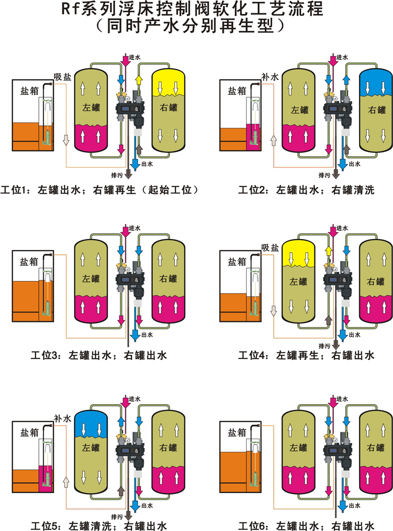 全自動鈉離子交換器,依托專利產(chǎn)品多功能平面閥和現(xiàn)代先進的自動化微電腦技術,用轉動對位方式實現(xiàn)液相的切換、控制原水、軟化水、鹽液和廢水在系統(tǒng)內(nèi)的流量和流向,自動完成交換器周期循環(huán)軟化過程的全自動。