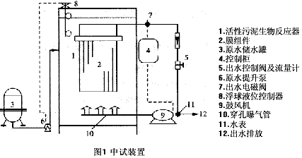 本研究擬檢驗國產膜的可應用性,同時省去傳統的出水抽吸泵[2],采用位差驅動出水,省去復雜的氣或水反沖洗設備,低水頭間斷工作,盡量降低曝氣量和動力消耗,以使開發的設備盡快投入實際應用。